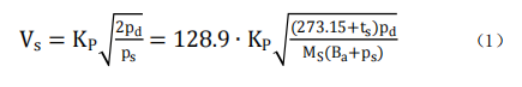 SVPT-100 型溫壓流監測儀是基于傳統皮托管的差壓測量原理設計的。測量時,將“S”型皮托管插入管道中,并使皮托管的全壓和靜壓測孔中心軸線固定在過流斷面中心且與流線方向一致,全壓測孔正對氣流方向,同時靜壓測孔背對氣流方向。煙氣的流速與其動壓平方根成正比,根據測得某測點處的動壓、靜壓以及溫度等參數,測點氣流速度 Vs 按式(1)計算