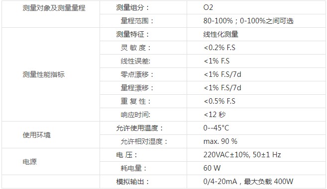 本系統中的分析儀表選型、配置及實現方案,保證嚴格遵照醫用氧的指標要求,所提供的分析儀表完全滿足儀表數據表提出的技術規格,并保證儀器的完整性及設計合理性。